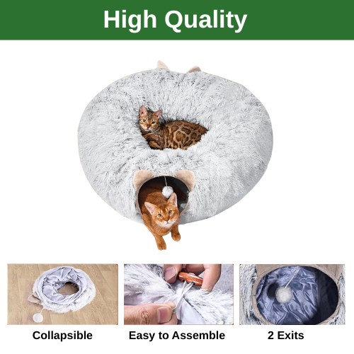 The TunnelTuck™ keeps your pet happy with a cozy, comforting hideaway they’ll love. Its lightweight, foldable design makes it easy to move, store, and clean. When the holidays arrive, it transforms into a festive tree skirt that adds warmth and charm.