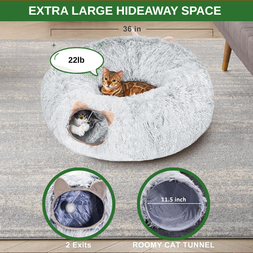 • 36''W×36''D×11.5''H. Tunnel space is large, large cats shuttle will not be crowded.